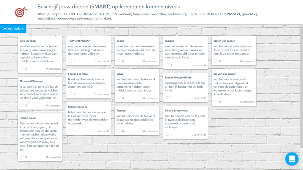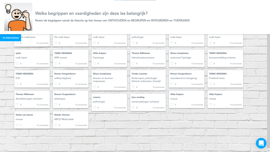 Voor het toepassen van werkvormen die samenwerkend leren bevorderen gebruik ik doorgaans Nearpod Collaborate Board. Deze tool biedt mij de mogelijkheid antwoorden van studenten eerst te beoordelen voordat ik ze post. Ik kan er ook voor kiezen om de antwoorden meteen te laten verschijnen in beeld, dit is meer toepasselijk voor een onderwijsledergesprek.